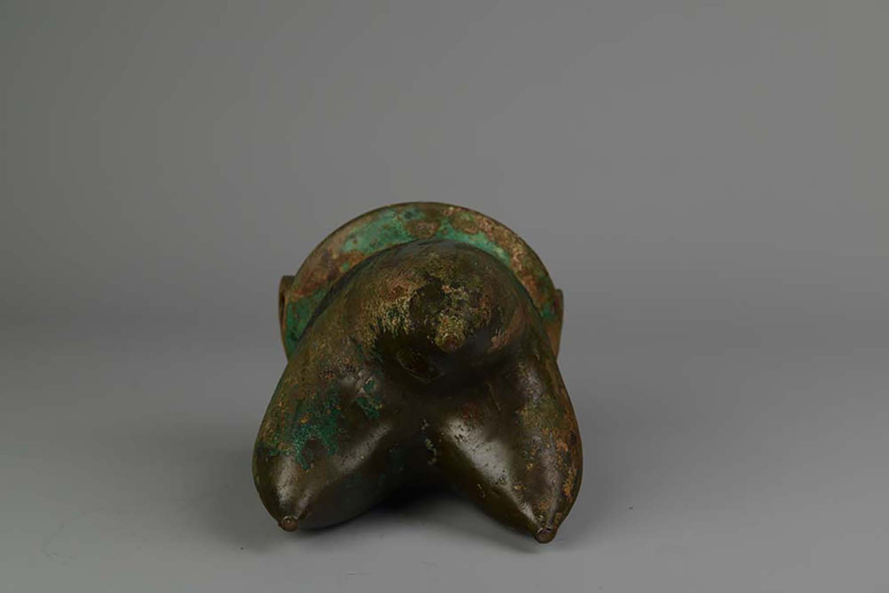 内容:侈口,尖唇,环形双立耳,束颈,三袋足分裆,颈下饰一周三组饕餮纹,腹内壁有铭文。
