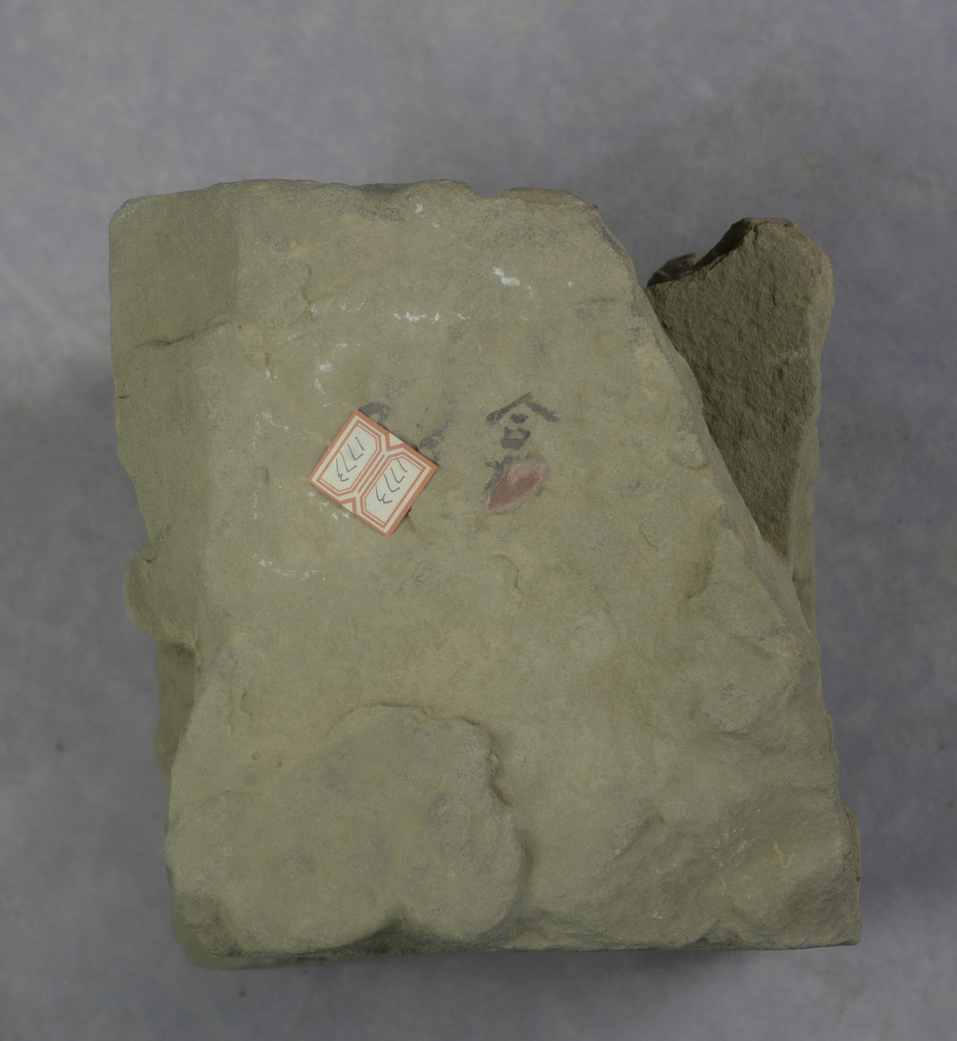 灰黄色砂岩质,塔身作上小下大四面柱状,四壁开拱形龛,正面龛内雕释迦,多宝佛对坐论经,其余三龛均雕一坐佛二菩萨,佛高肉髻,大垂耳,眉眼细长,面相清癯,结跏趺坐,佛与菩萨均着通肩袈裟,衣褶较疏,衣摆下掩,龛眉阴刻火焰纹。