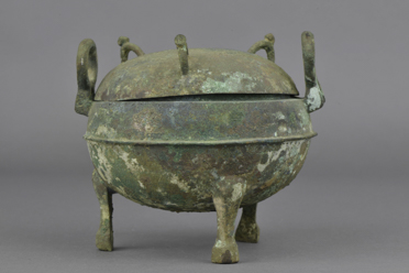 泥质灰陶。顶若伞盖,三层瓦棱,周围出檐,中央有气孔。仓身圆腹下内收,小平底略内凹,腹中部开一方窗,“Ⅱ”字形窗框凸起,窗左侧倒刻一“彭”字,仓顶施红彩,仓身饰白陶衣。